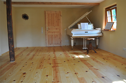 Sie wird immer ein lebhaftes Verlegebild darstellen. Kern- und Splintholz bekommen durch das Sonnenlicht einen kräftigen Kontrast.